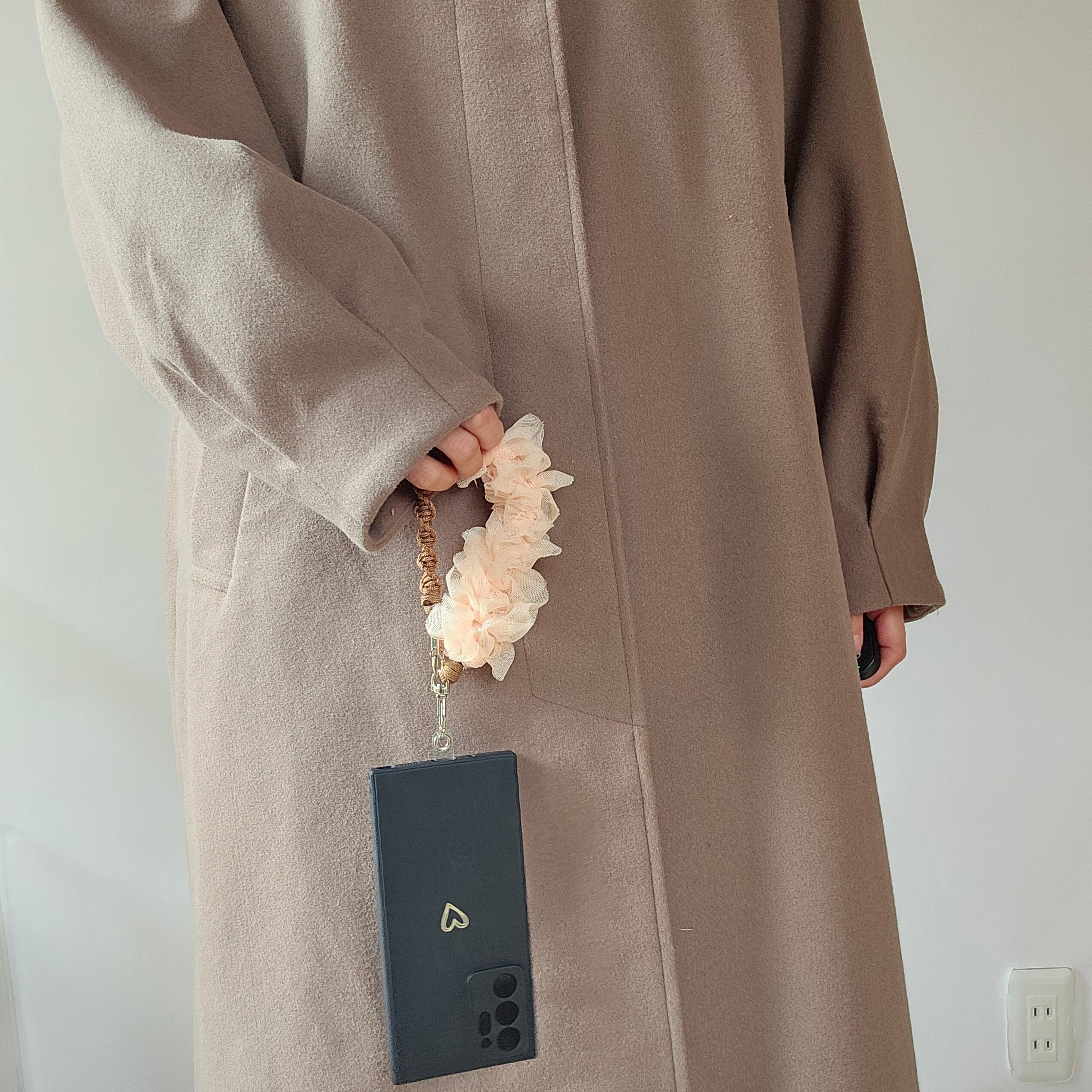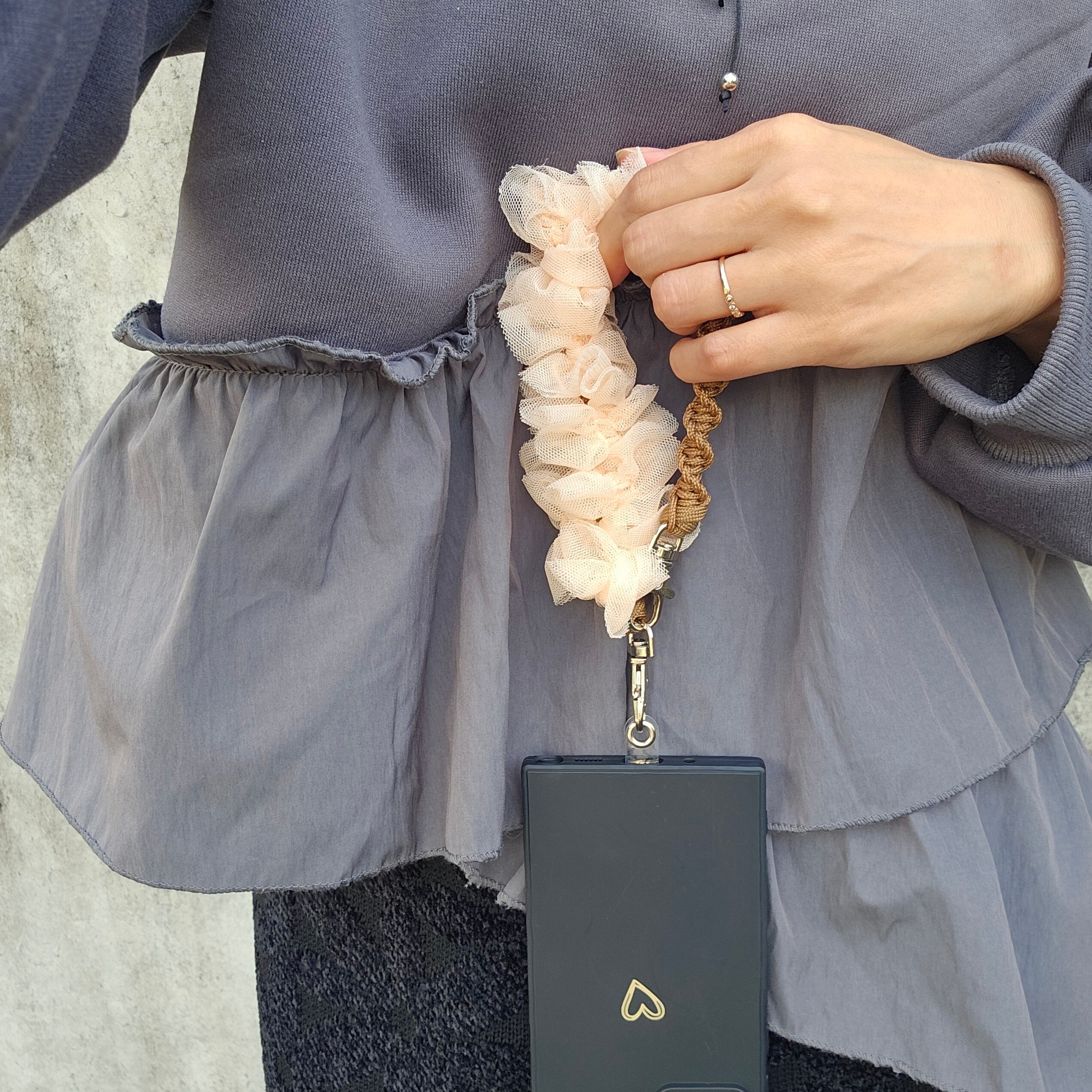 ふわふわフリル付きスマホハンドストラップ